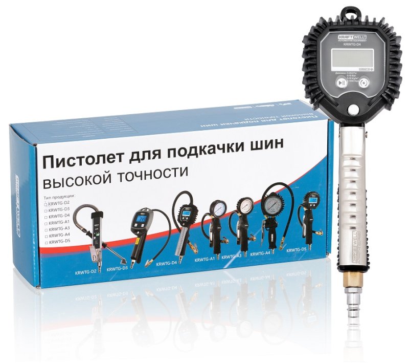 KRWTG-D4 KraftWell Пистолет для подкачки шин. В цветной коробке. Цифровой манометр. Давление до 18 бар.