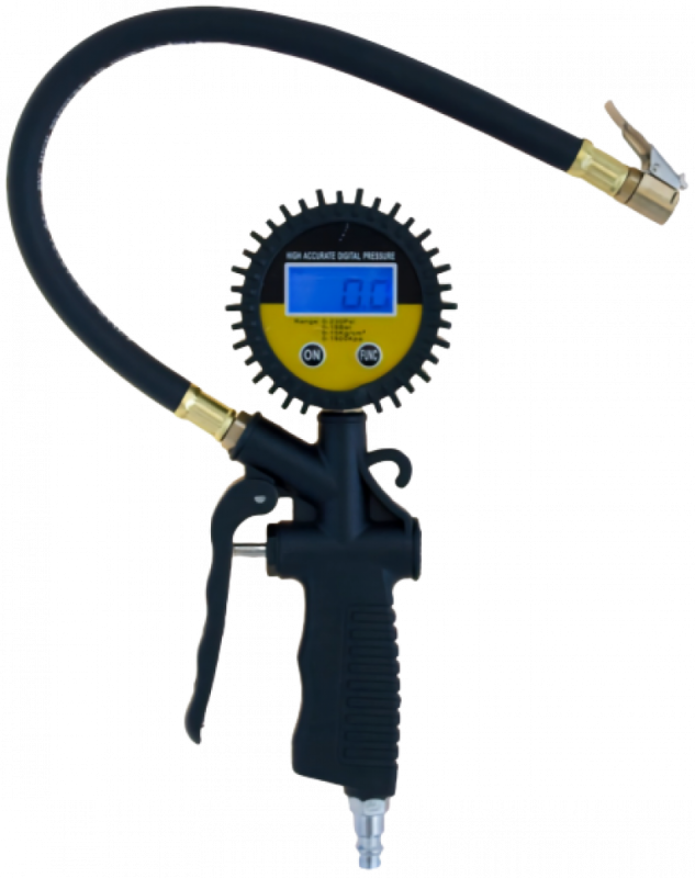 KRWTG-A3 KraftWell Пистолет для подкачки шин. В цветной коробке. Аналоговый жидкостный манометр. Пластиковая рукоятка, металлический курок. Давление до 16 бар.