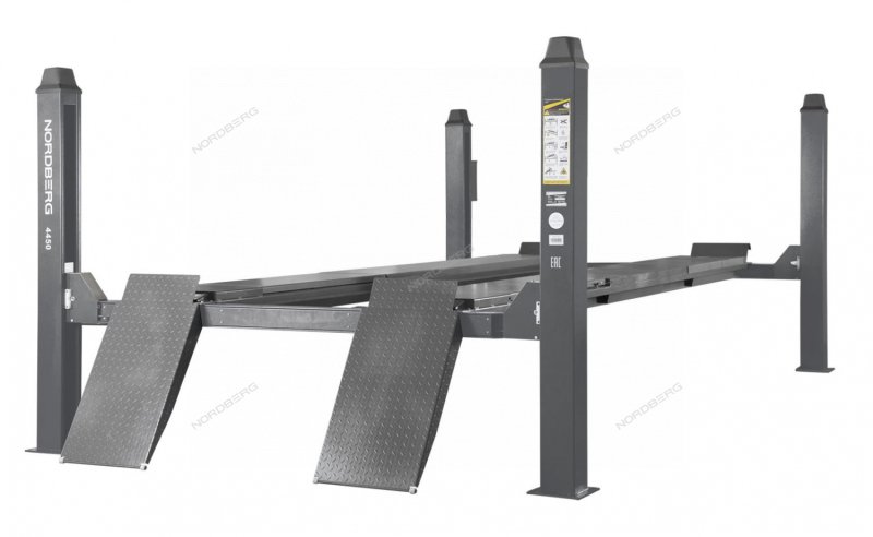 Подъемник четырехстоечный NORDBERG 4445J_MG – высококачественное подъемное оборудование для ремонта легковых авто, внедорожников, минивэнов и легких грузовиков