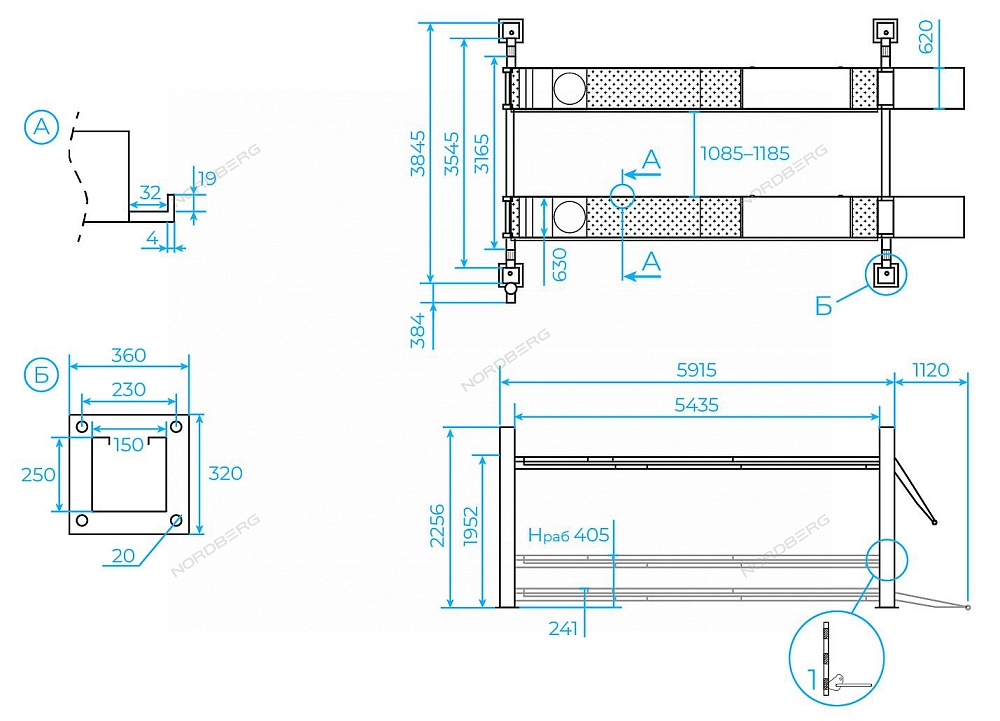 - Анкерные болты в комплекте — 20×150 мм, для надёжной установки подъёмника.