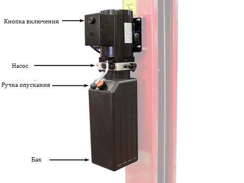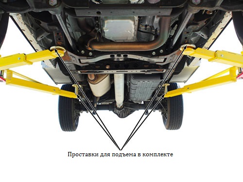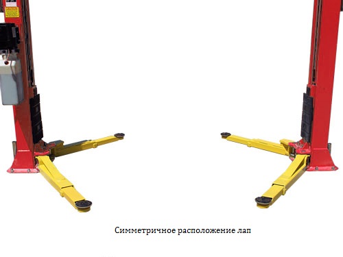 Двухстоечный электрогидравлический подъемник асимметричной конструкции с нижней синхронизацией. Снятие с замков безопасности ручное отдельно на каждой стойке.