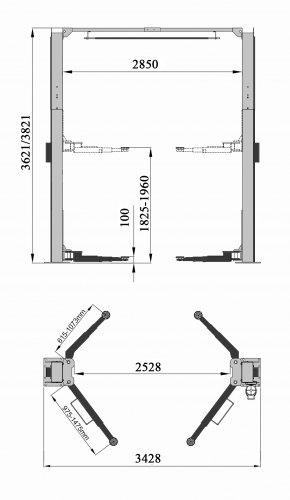 Nordberg N4121A-4T_220V 4-х тонный электрогидравлический подъемник (220В) с нижней тросовой синхронизацией Асимметричная конструкция подхватов с минимальной высотой подъема
