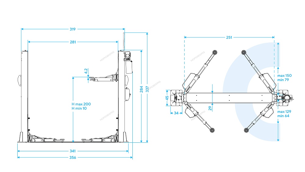 Подъемник 2х стоечный г/п 4,5т, 380В (серый) NORDBERG N4125-4,5G купить в Воронеже цена ✅ - Все для СТО
