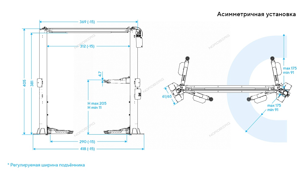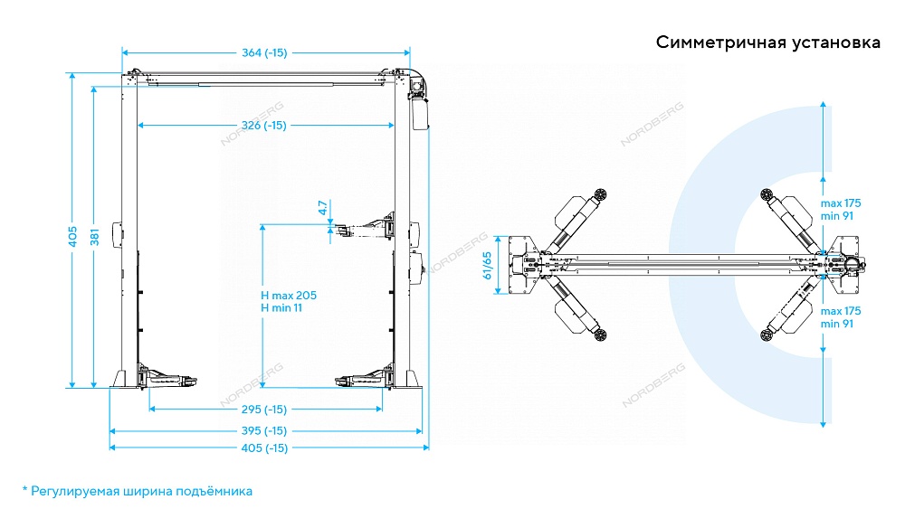 Подъемник двухстоечный 4,5 т, верхняя синхронизация, 380 В, серый NORDBERG N4125H-4,5G купить в Воронеже цена ✅ - Все для СТО
