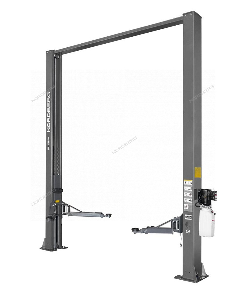Подъемник двухстоечный 4 т, верхняя синхронизация, H=3,6 м, 380 В, серый NORDBERG N4120H-4G_3+2_380 купить в Воронеже цена ✅ - Все для СТО
