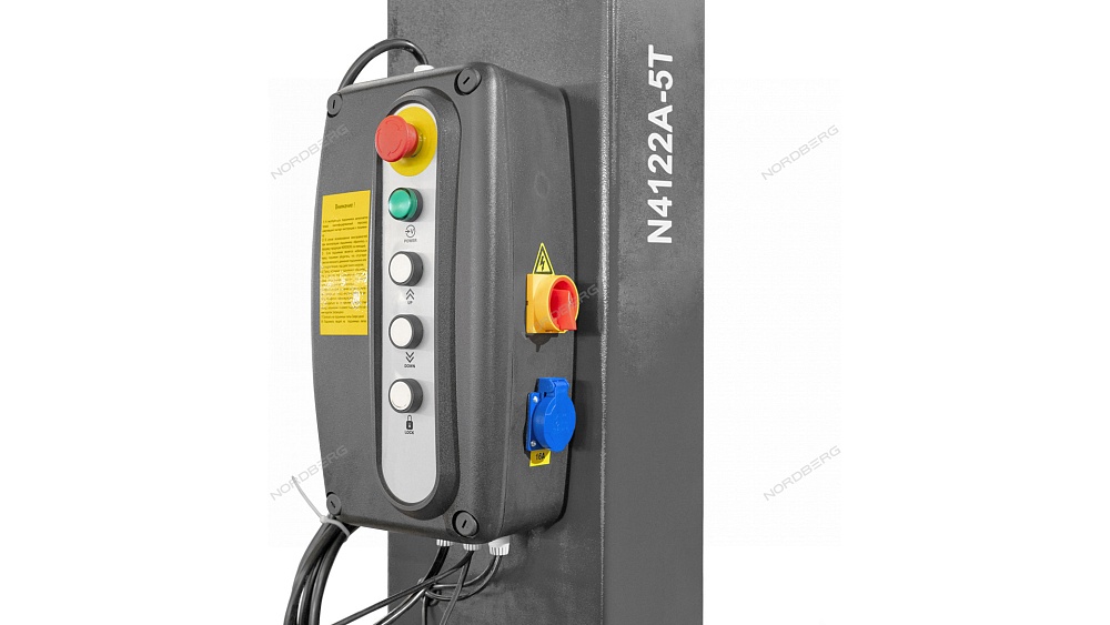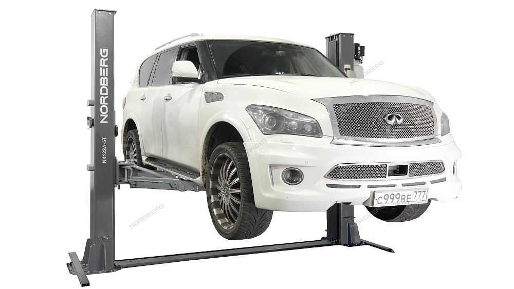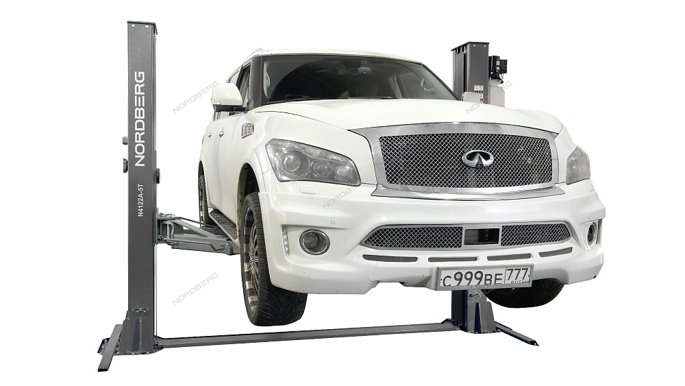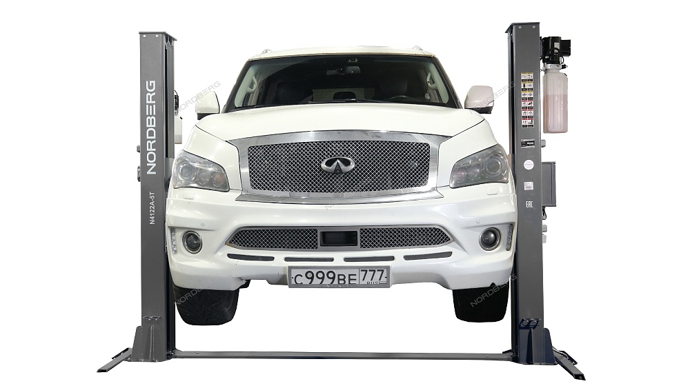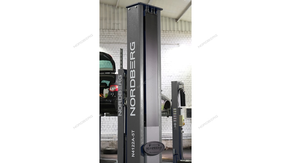 Подъемник двухстоечный 5 т, нижняя синхронизация, с электростопорами, 380 В, серый NORDBERG N4122AE-5G_380 купить в Воронеже цена ✅ - Все для СТО