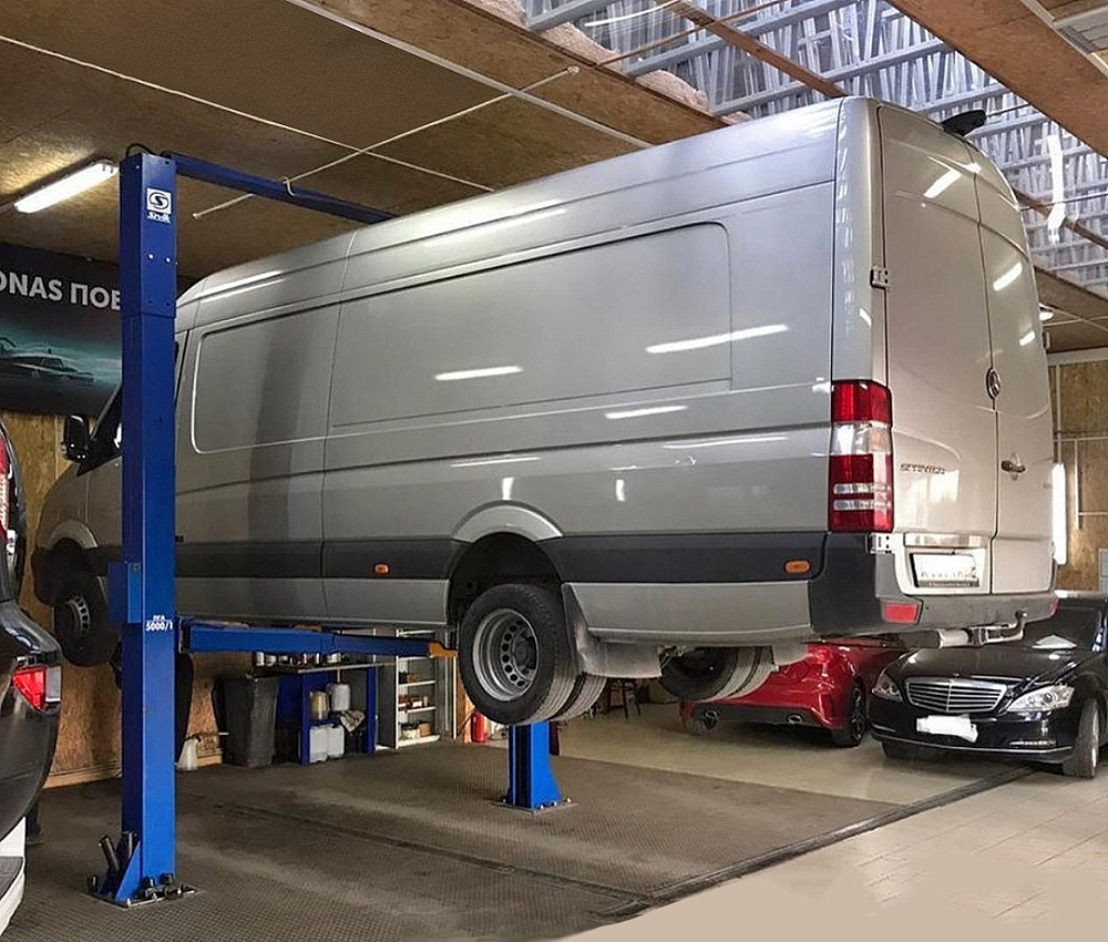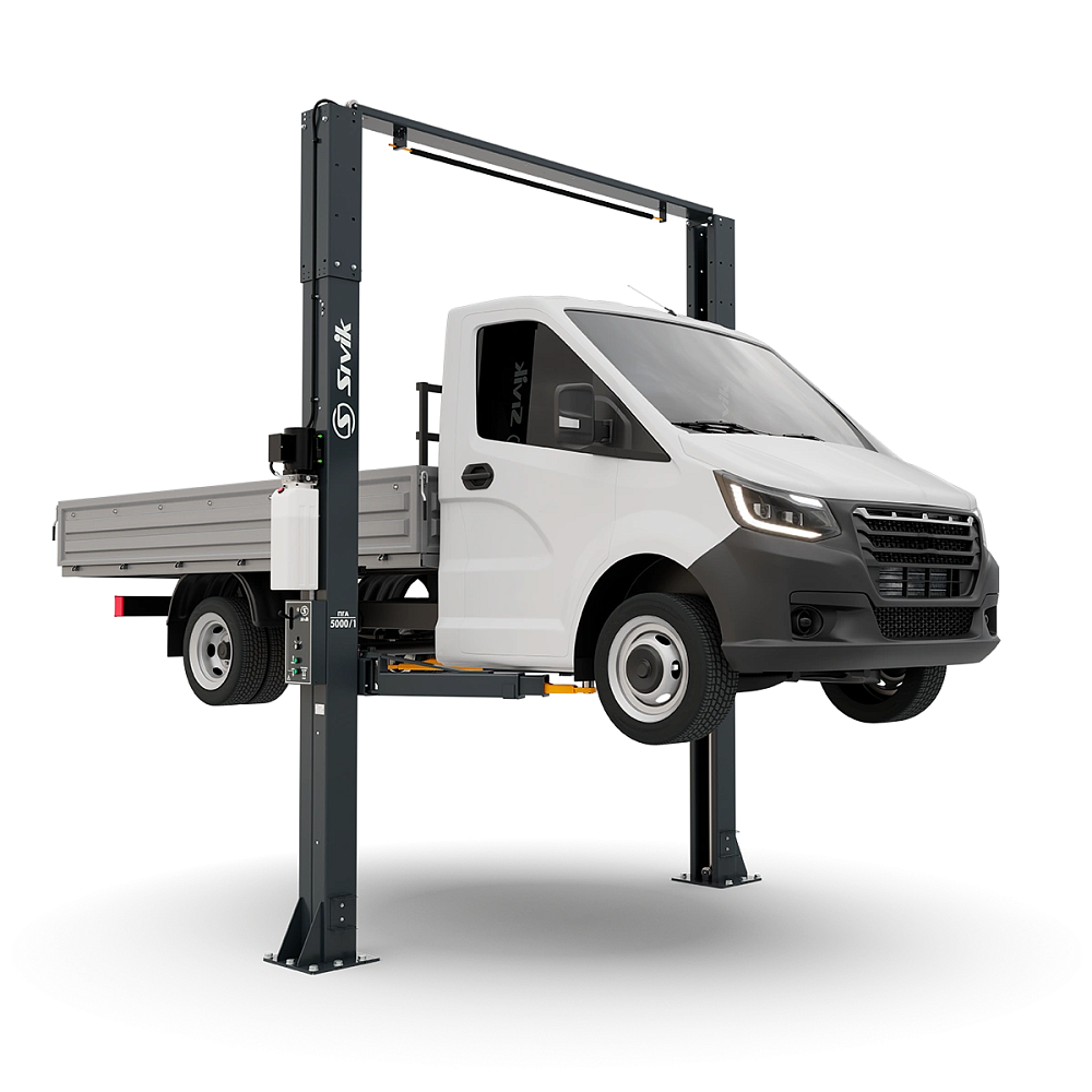 Двухстоечный электрогидравлический подъемник для легковых автомобилей, микроавтобусов, «джипов» и легких грузовиков типа «Газель» общей массой до 5 т.