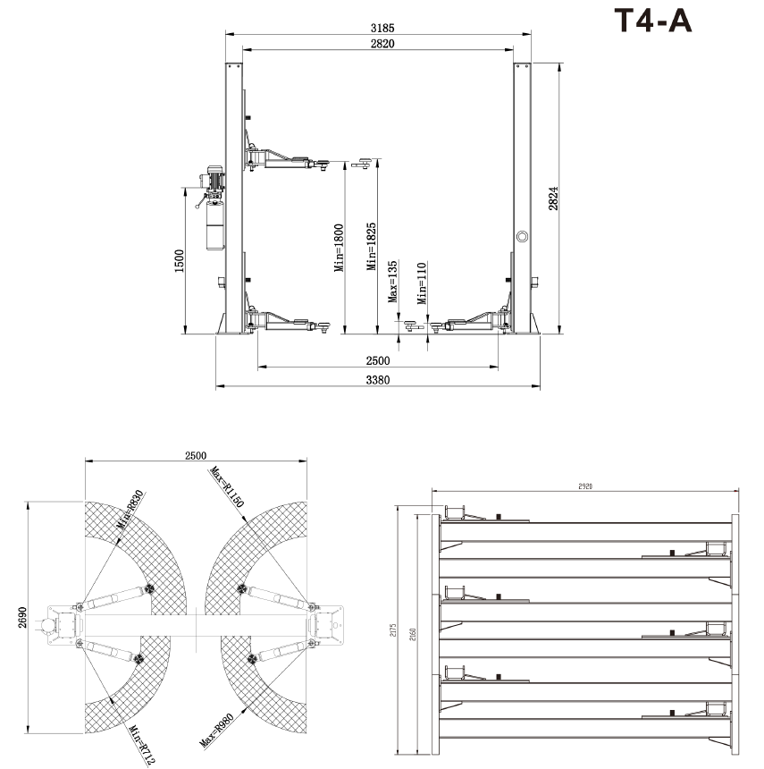 ATIS T4A Двухстоечный электрогидравлический подъемник 4 тонны купить в Воронеже цена ✅ - Все для СТО