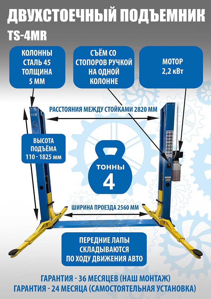 TS-4MR Подъемник 2-хст. г/п 4 т съем-ручка+проставки (2025) (380 V ТВ) купить в Воронеже цена ✅ - Все для СТО