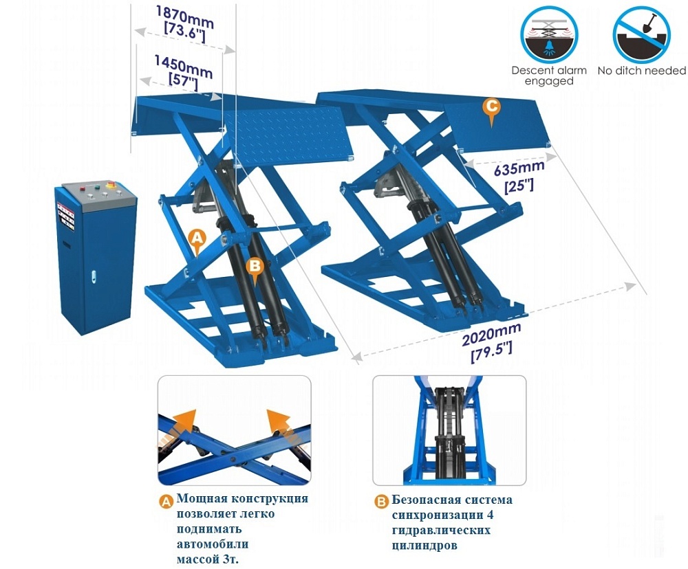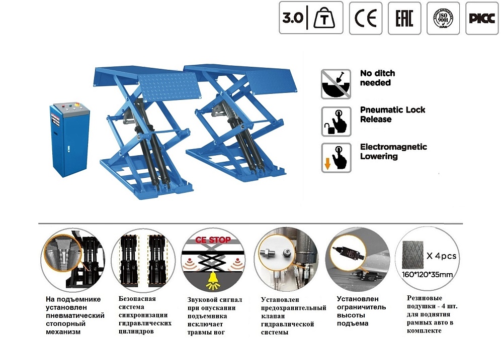 ES-1113M Подъемник ножничный г/п 3 т напольный купить в Воронеже цена ✅ - Все для СТО