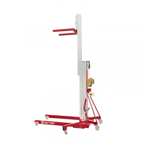 Телескопический подъемник SLA-25 представляет собой прочное, устойчивое и простое в использовании оборудование для подъема материалов. Складная мачта выполнена из легкого и долговечного алюминиевого сплава. Подъем груза осуществляется с помощью ручной лебедки. Для сборки и настройки материалоподъемника не требуются инструменты, с этим запросто справится один человек. Компактные размеры, малый вес и складные опоры упрощают хранение и транспортировку. Грузоподъемность модели достигает 250 кг.
