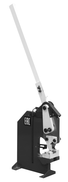 Мощный, компактный станок для пробивки круглых отверстий в листовом металле до 5 мм с глубиной хода 160 мм. Станок оснащён упором фиксации подачи заготовки в зев станины. Двойная рукоять рычага в собранном состоянии имеет длину 1670 мм, с установкой одной части длина равна 850 мм. Конструкцией и оснасткой станок Stalex HP-20 аналогичен c узлом многофункциональных ножниц Stalex PBS-9.