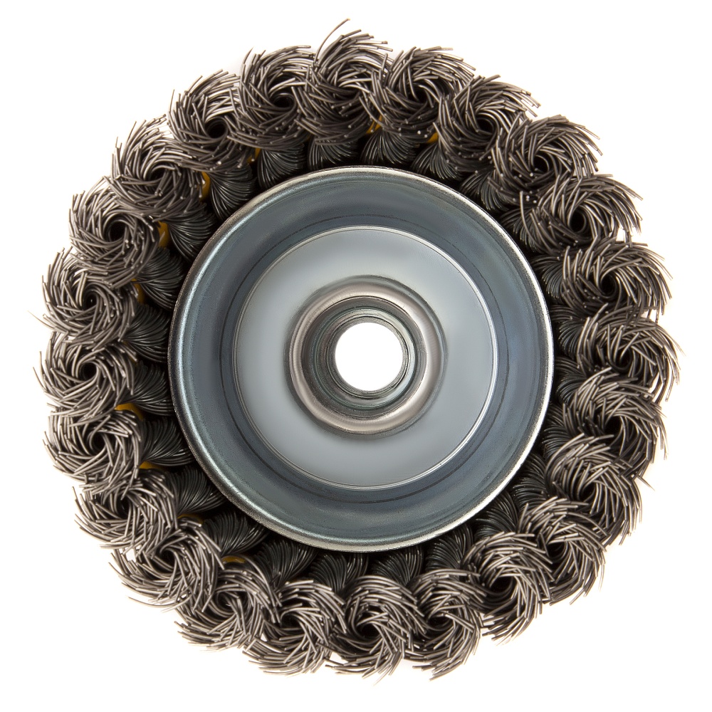 <p>Щетка для УШМ «Чашка» Denzel 746283, М14, диаметром 100 мм, с щетиной из крученой нержавеющей проволоки диаметром 0,5 мм, предназначена для грубой очистки твердых поверхностей от ржавчины, лакокрасочных покрытий, загрязнений, удаления заусенцев, а также для зачистки сварных швов. Снимает толстый слой материала, идеально подходит для обработки изделий из нержавеющей стали. Щетка имеет форму чашки и позволяет очищать участки большой площади. Оснастку устанавливают на вал углошлифовальной машины. Рекомендуемая максимальная скорость вращения составляет 8500 об/мин. Во время работы следует использовать средства индивидуальной защиты — очки, респиратор, наушники, перчатки, а также специальную одежду и обувь. Щетка применяется в строительстве, на производстве, а также в быту.</p><h2>Преимущества</h2><ul><li>Проволока толщиной 0,5 мм, скрученная в пучки, придает щетине устойчивость к повышенным нагрузкам.</li><li>Покрытый эмалью корпус и щетина из нержавеющей стали AISI 201 не ржавеют, поэтому щетку можно использовать в условиях сильной влажности.</li><li>Частицы проволоки из нержавейки, остающиеся на обрабатываемой поверхности, не вызывают ее коррозии.</li><li>Усиленный корпус и гайка обеспечивают повышенную прочность щетки.</li><li>Крепление на гайку М14 ускоряет установку и замену оснастки.</li><li>Строгий контроль качества на всех этапах производства подтверждает надежность щетки.</li></ul>