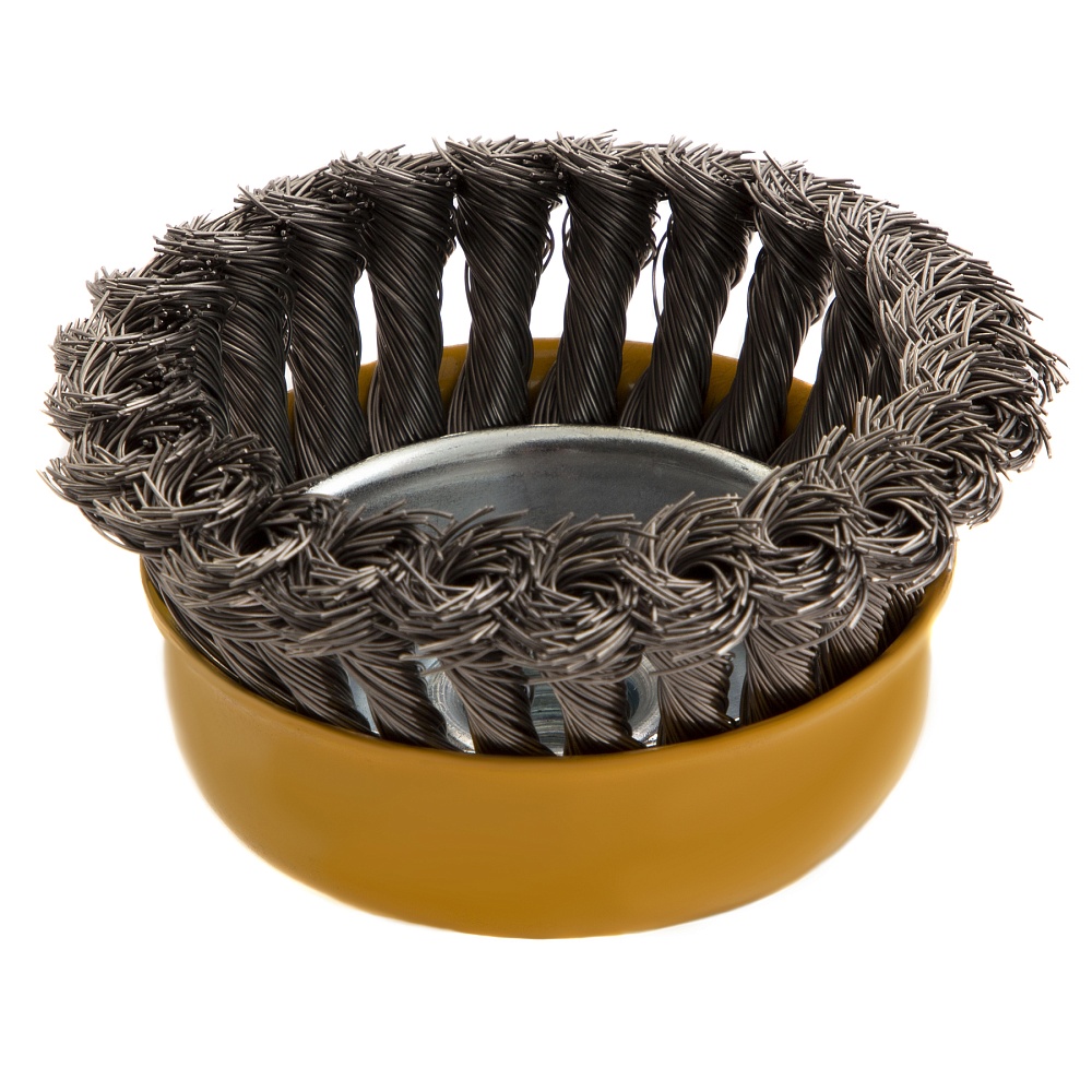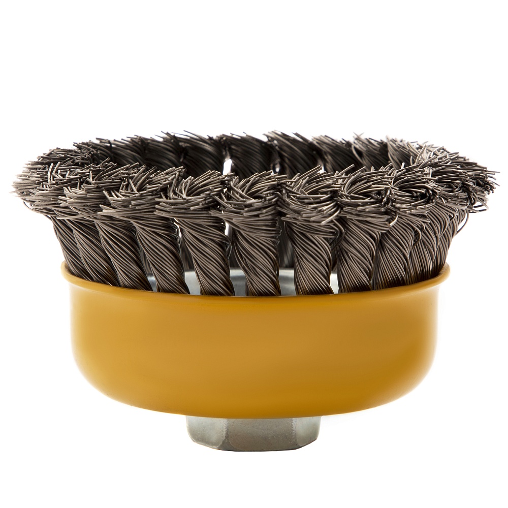 Щетка для УШМ, 100 мм, "Чашка", крученая нержавеющая проволока 0.5 мм, М14 Denzel купить в Воронеже цена ✅ - Все для СТО