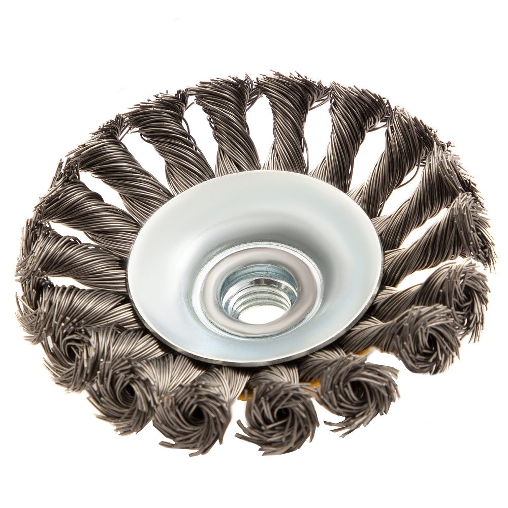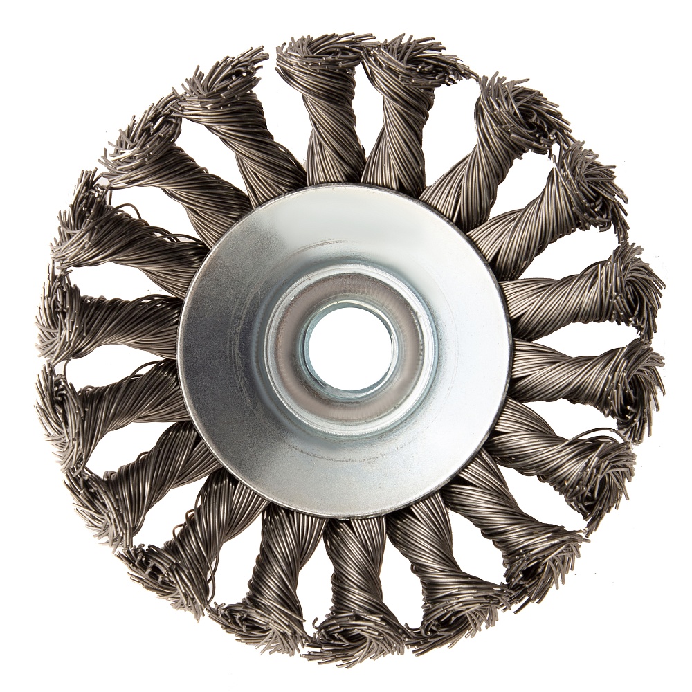 Щетка для УШМ, 100 мм, "Тарелка", крученая нержавеющая проволока 0.5 мм, М14 Denzel купить в Воронеже цена ✅ - Все для СТО