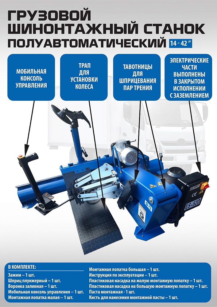 ·         Грузовой шиномонтажный станок заправлен всеми необходимыми маслами и технологическими жидкостями.