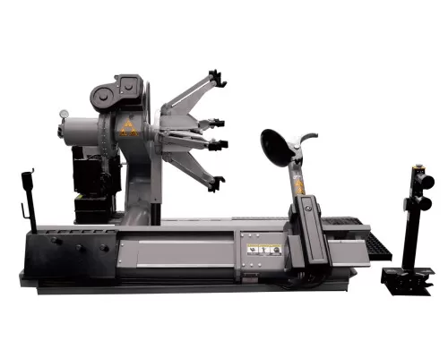 Конструкция стенда обеспечивает универсальность и высокую производительность, позволяя работать с широким диапазоном размеров дисков (от 14 до 56 дюймов) и колес (до 1600 мм по диаметру и весом до 2500 кг).