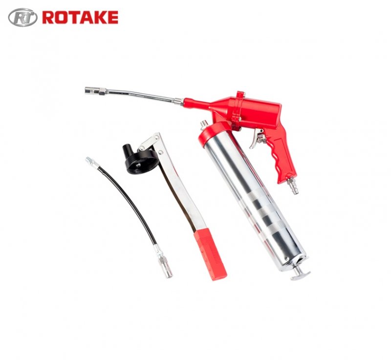 Шприц для смазки пневматический для шприцевания консистентной смазкой – 6 предметов. Объем бака – 500 мл. При давлении воздуха 2-8 атм давление смазки 80-400 атм максимально. Набор: нагнетатель, емкость для смазки, мягкий и жесткий наконечник, адаптер для ручной смазки, штуцер подключения 1/2”.