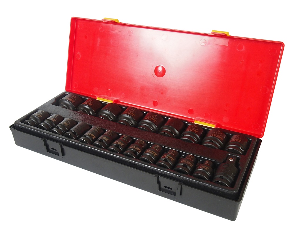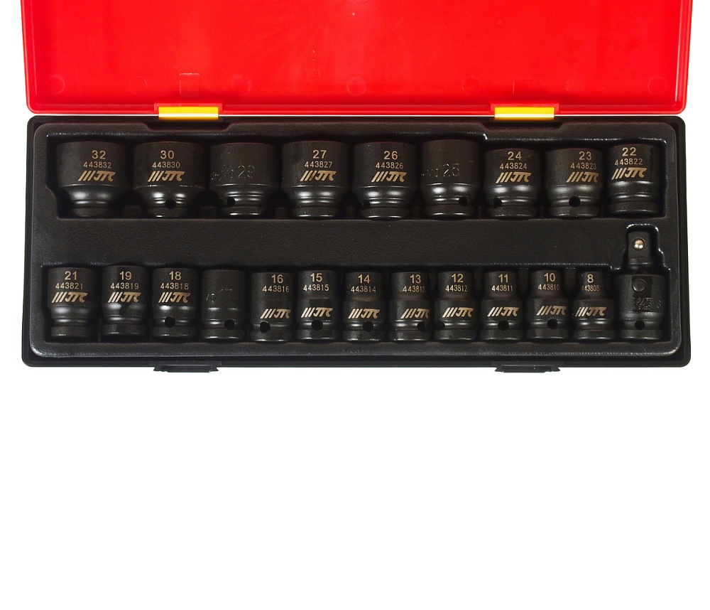 Набор головок торцевых 1/2" 6-ти гранных 8-32мм ударных в кейсе 22 предмета JTC