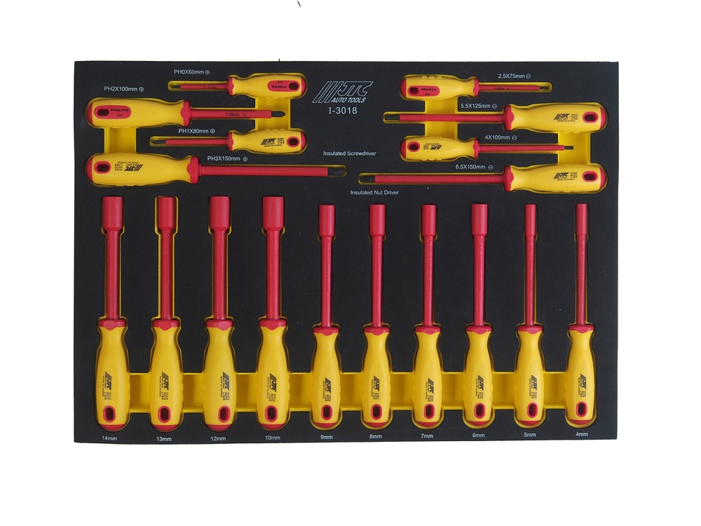 12 изолированных накидных коленчатых ключей: 8, 10, 11, 12, 13, 14, 15, 16, 17, 18, 19, 21.