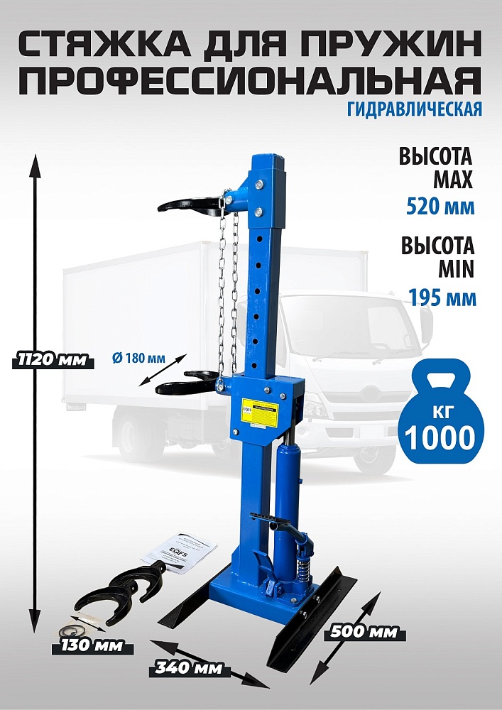 Профессиональная. Напольная с ножным приводом. Облегчает монтаж / демонтаж особо прочных пружин со стойки. Для работы со стойками легковых автомобилей, джипов, микроавтобусов и коммерческого автотранспорта. Конструкция изделия сварная с использованием легированной стали. Гидравлическая с усилием 1000 кг. Ход поршня 325 мм. Диаметр пружины 101 - 180 мм. Рабочая длина min-max 195-520 мм.