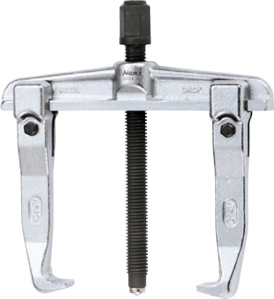 5312-08 двух лапый съемник, 8" Универсальный съемник с двумя захватами «американского типа» является одним из наиболее простых и в то же время, удобных в применении типов съемников. Захваты свободно перемещаются по направляющим траверсы, сохраняя одинаковую площадь пятна контакта лапок с демонтируемой деталью. При нагрузке захваты заклиниваются на направляющих, что предотвращает соскальзывание лапки с демонтируемой детали. Съемник также можно использовать для внутреннего захвата детали. Захваты изготовлены из хромованадиевой стали путем ковки. Ходовой винт изготовлен из хромомолибденовой стали.
