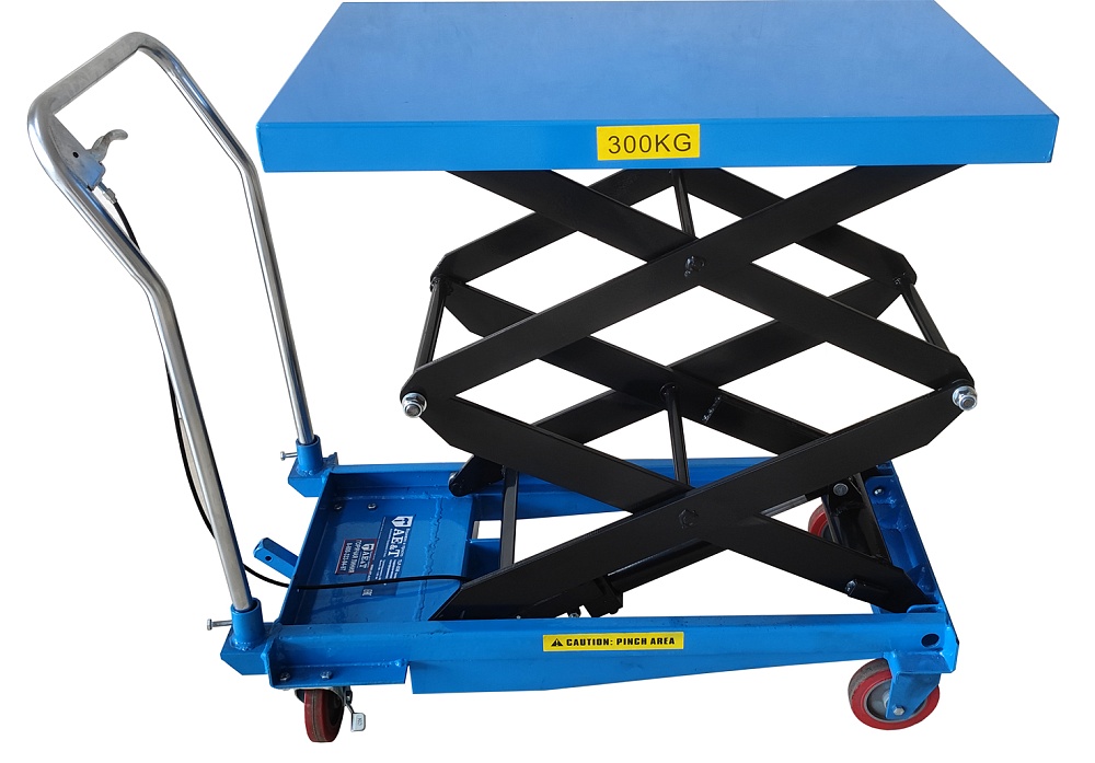 Оборудование прочное, изготовлено из качественных долговечных материалов, имеет красивый внешний вид и отличается простотой в эксплуатации. Подъем грузовой платформы осуществляется нажатием на педаль. Опускание регулируется рукояткой.