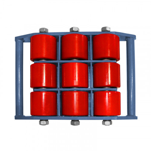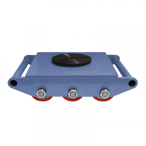 Большая площадь опоры исключает повреждение поверхности пола. Прочная рама не подвержена деформациям. Механизм поворота позволяет легко разворачивать на 360 градусов любой груз. Максимальная грузоподъемность модели — 15 т, количество роликов — 9 шт.