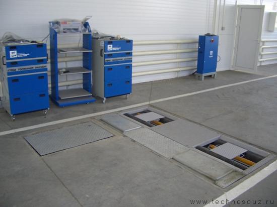 СТС-4-СП-14. Напольный роликовый стенд тормозной системы для легковых автомобилей с нагрузкой на ось до 3500 кг. С эстакадой.