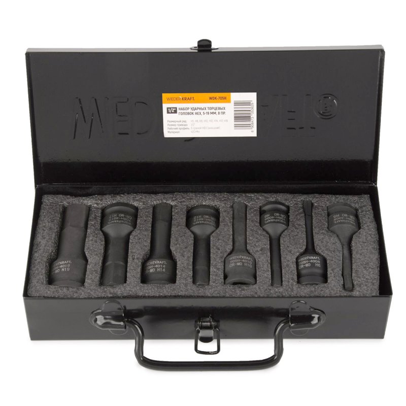 8 торцевых шестигранных ударных головок H5, H6, H8, H10, H12, H14, H17, H19Условия доставки: