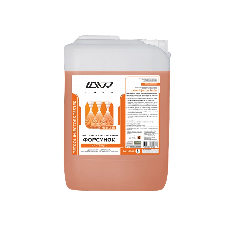 Жидкость для тестирования форсунок на стендах 5 л Лавр Ln2004 необходима для контроля факела распыла и производительности при проведении диагностики форсунок на стенде. Кроме того, данная жидкость способна удалить остатки загрязнений после очистки форсунок в ультразвуковой ванне.