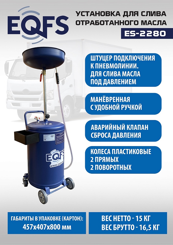 ES-2280 Установка для слива отработанного масла купить в Воронеже цена ✅ - Все для СТО