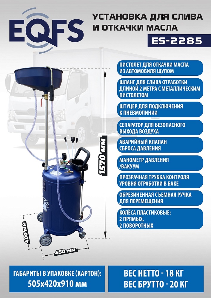 ES-2285 Установка для слива отработанного масла купить в Воронеже цена ✅ - Все для СТО