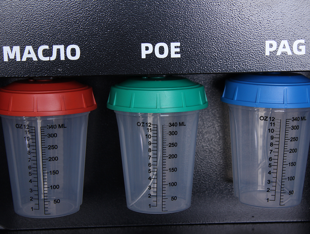 4 цифровые шкалы, соответственно для хладагента, масла PAG, масла POE и отработанного масла.