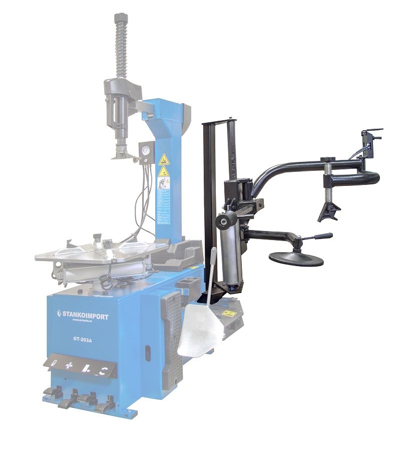 Третья рука (вспомогательное устройство) для работы с жесткими низкопрофильными шинами для станков - многофункциональное приспособление, которое предназначено для монтажа/демонтажа низко профильных, широких и жестких шин. Данная установка значительно ускоряет процесс бортировки.