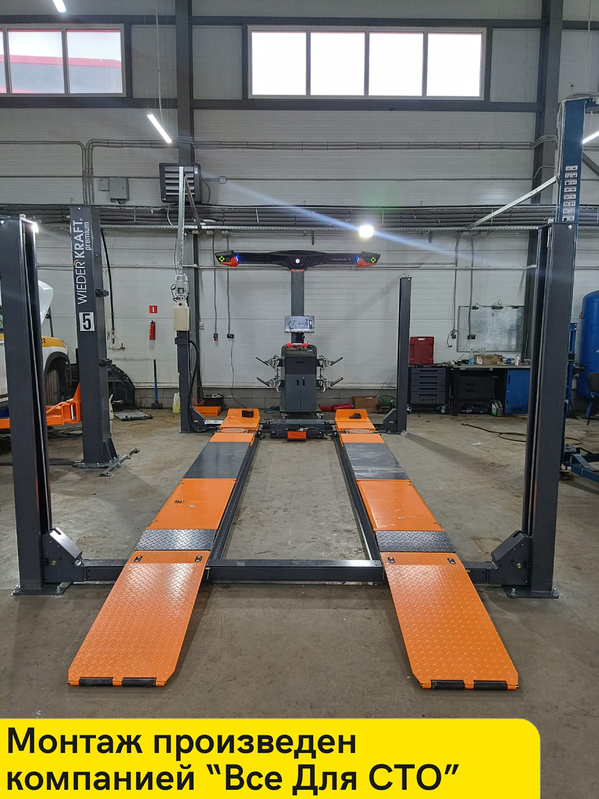Поставка и монтаж Подъемник четырехстоечный 5 тонн, WiederKraft WDK-545 для регулировки развал-схождения постоянному клиенту в г. Санкт-Петербурге. в Автосервис.